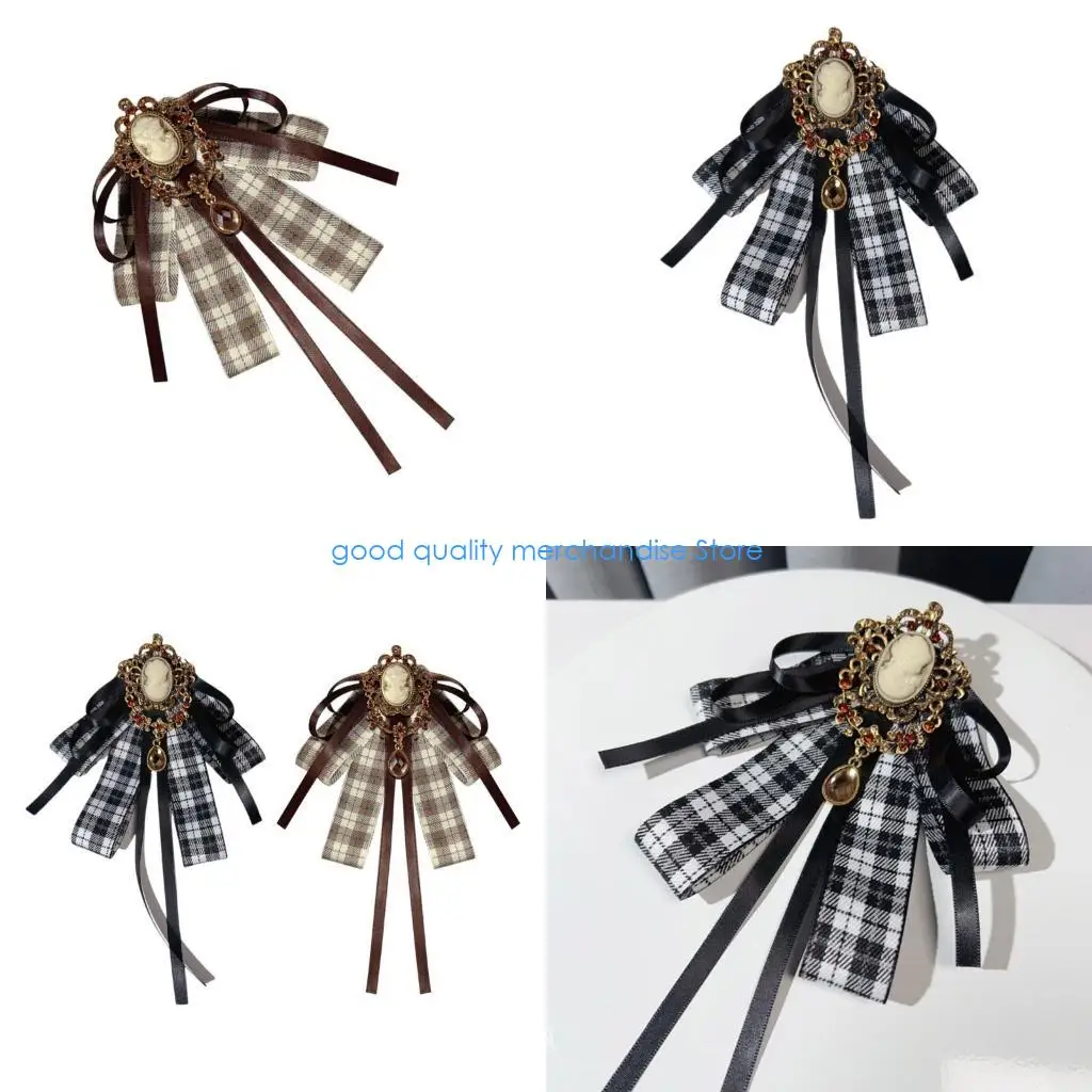 Y5JD Women Brooch Pin Elegant Collar BowTie with Blingbling Crystal Lace Ribbon