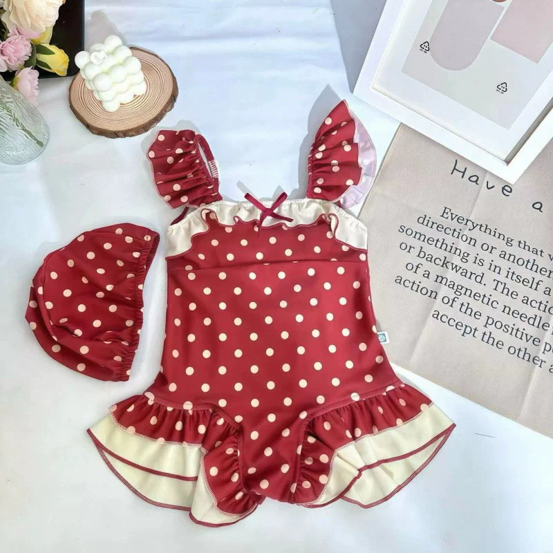 Girls' Polka Dot Swimwear Summer Children's Sweet One-Piece Swimsuit Bikini Kids Holiday Beachwear Toddler Casual Clothing