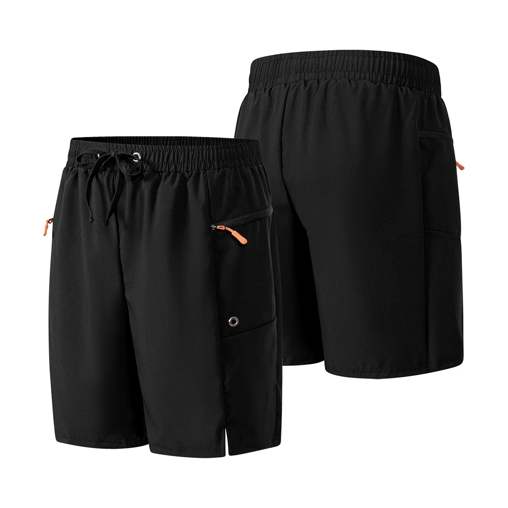Men's Summer Black Quick Dry Casual Gym Shorts Elastic Waist Side Security Zippered Pocket Versatile for Running Fitness Hiking