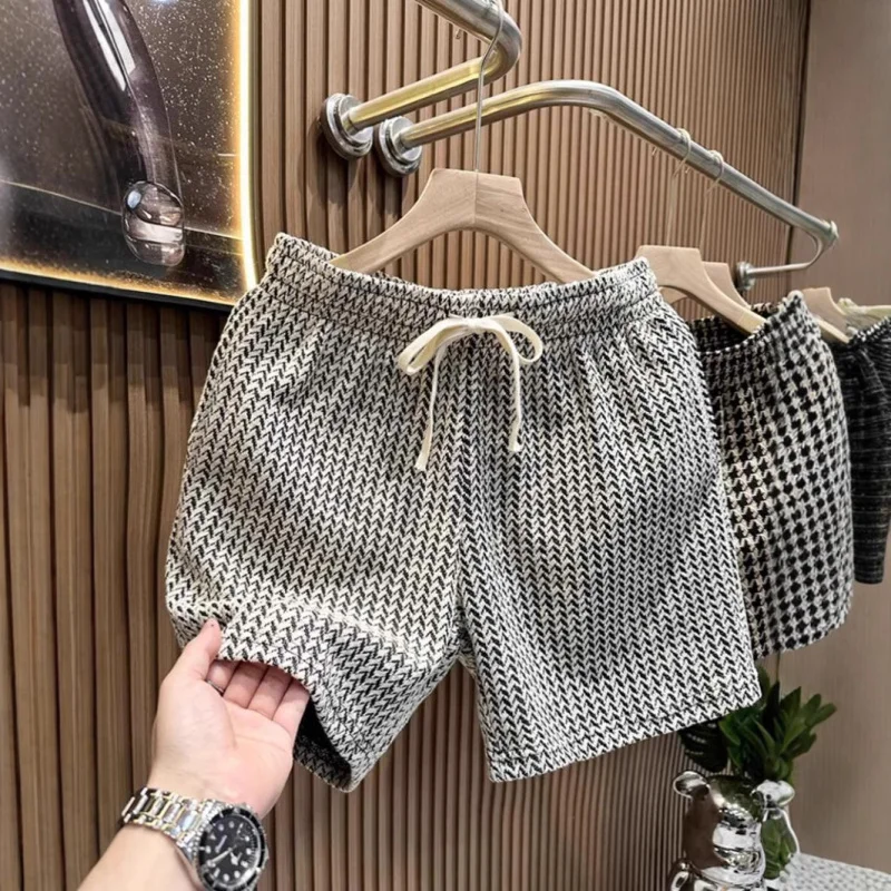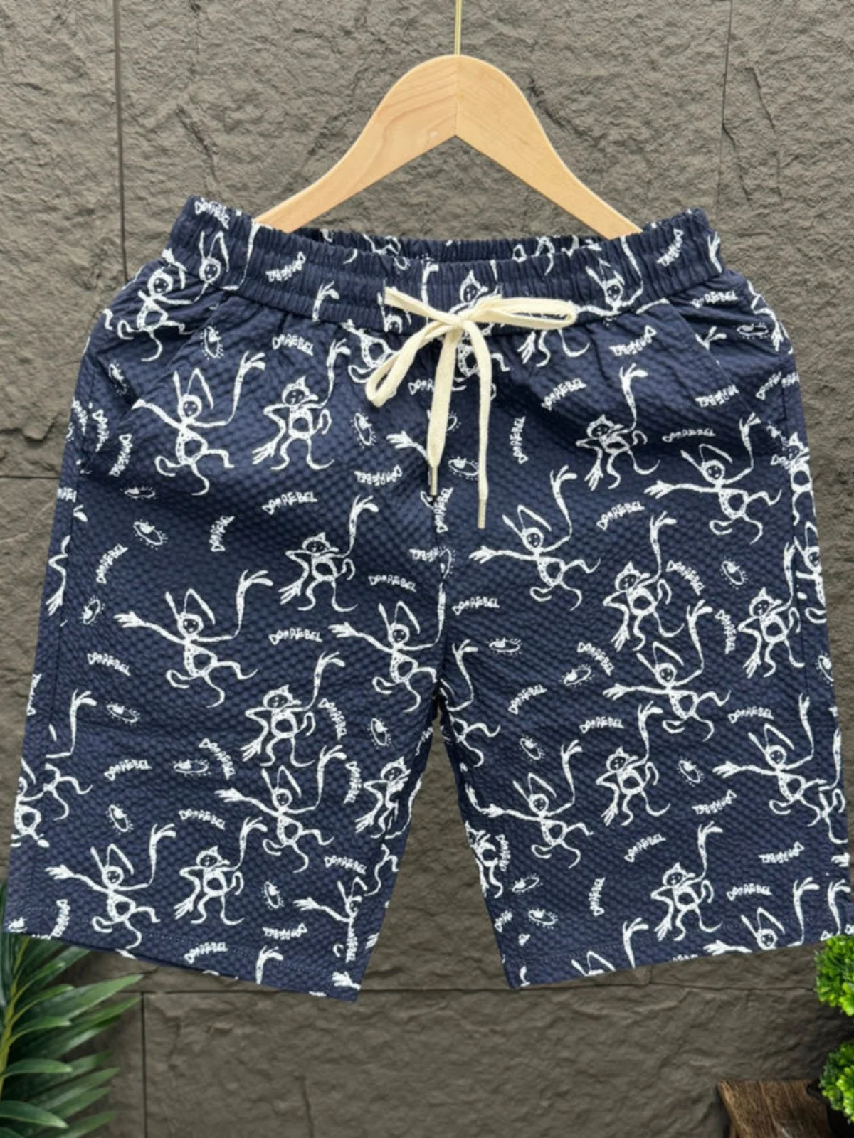 Qui Dry Ice Silk Bubble Cloth Men's orts Summer Casual Spor Beach Pants Loose Fit Elastic Waist Five Length Straight Leg
