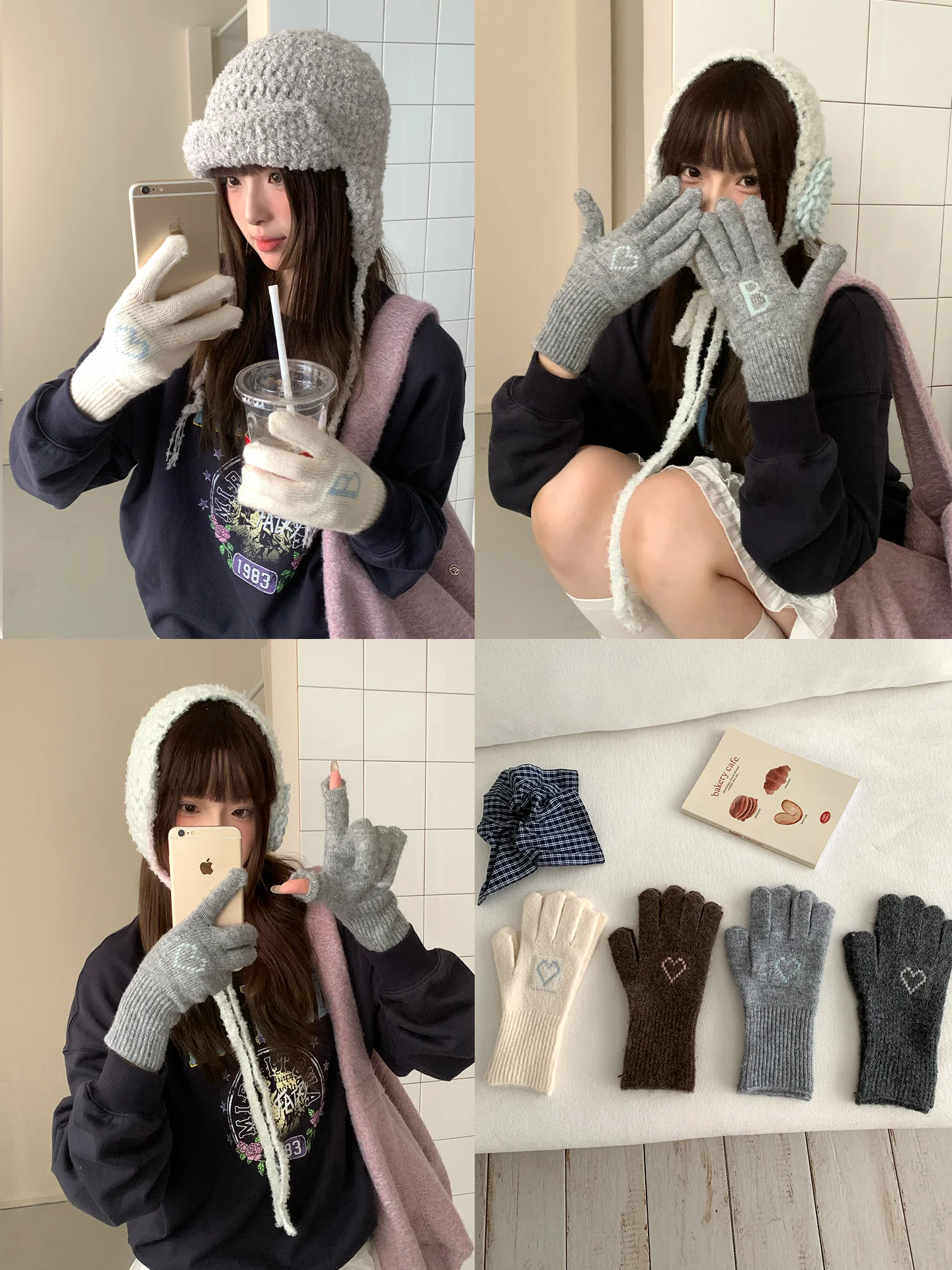 Touchscreen Knitted Fingerl Gloves Women's Warm Heart Letter Outdoor Cycling Faionable Casual Sle Middle Thin