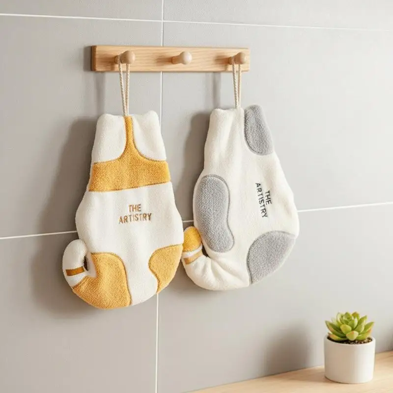 2Pcs Cute Cat Hanging Towel Kitchen Hand Towel Bathroom Soft Absorbent Handkerchief Wipe Towel Cartoon Kids Towels