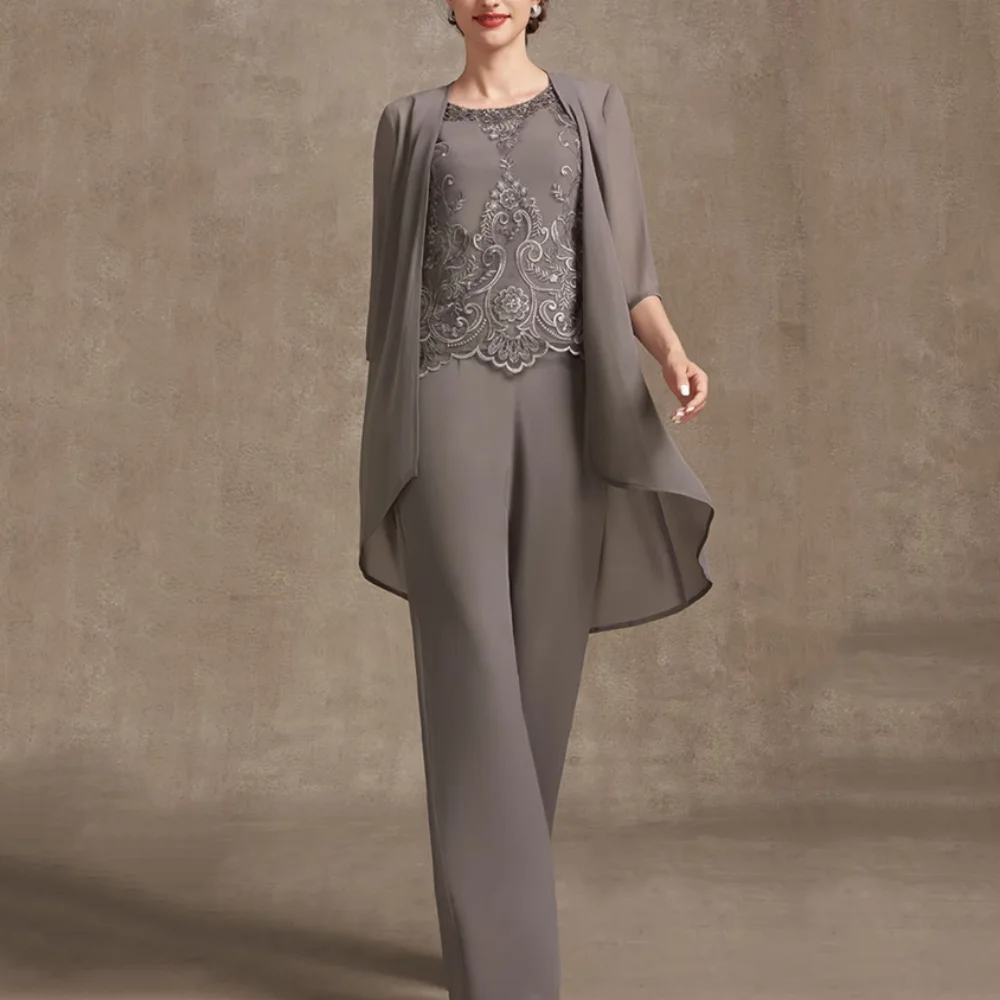Chiffon Pantsuits Mother Dress Custom Vintage Formal Occasion Gown Two Pieces Lace O Neck 3/4 Sleeve robes invitée mariage