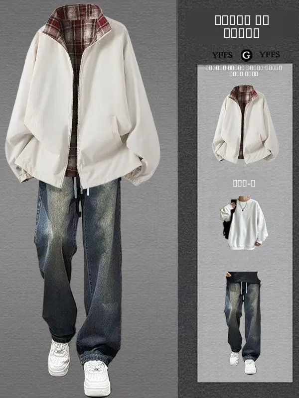 Men's Spring Faionable American Sle Baseball Jaet And Pants Set Stand Collar Double-Sided Wear Casual Sportswear