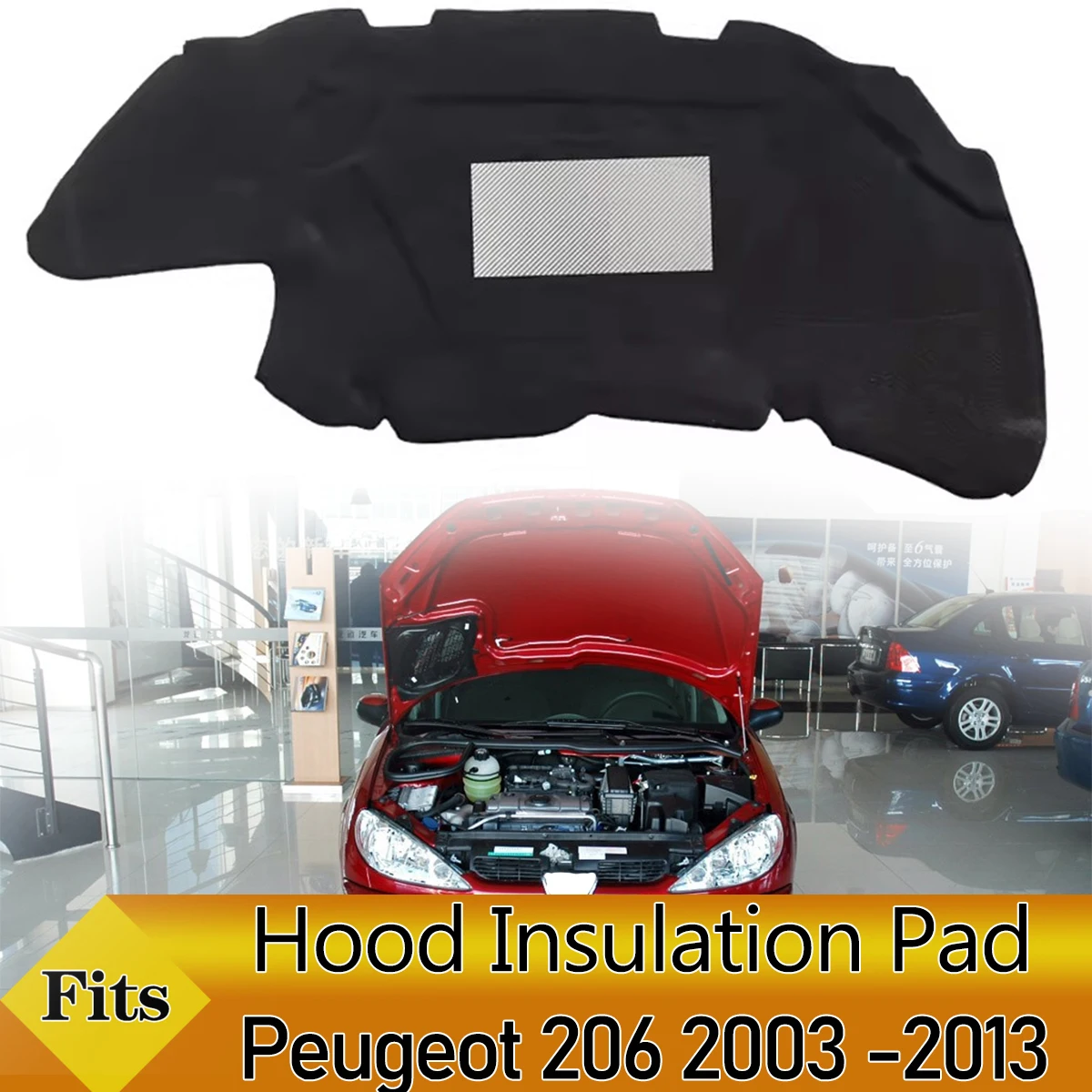 Front Engine Hood Insulation Pad Soundproof Mat Cover Foam Sound Heat Cotton Fireproof for Peugeot 206 2000 -2013