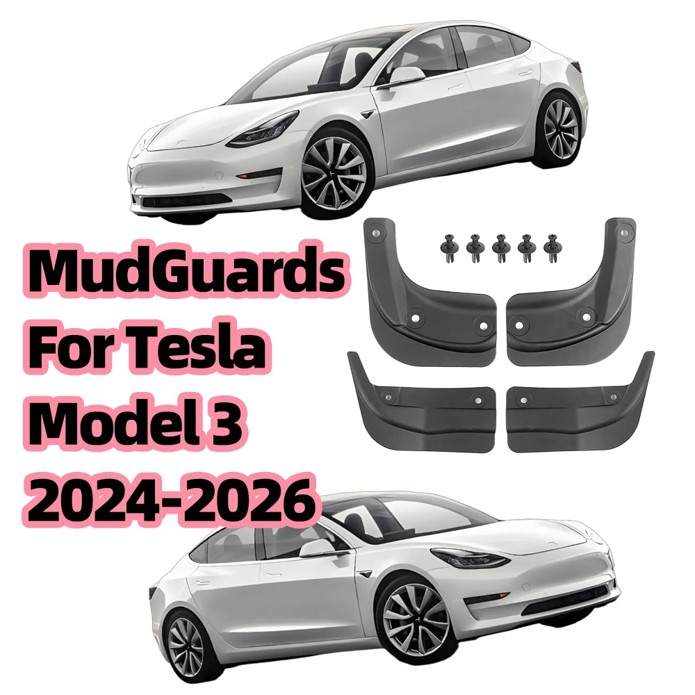 For Tesla Model 3 2024-2026 New Upgraded Soft Material Car Mud Flaps Front Rear Wheel Mudguards Splash Guards Fender Accessories