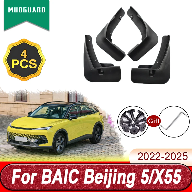 4PCS Mud Flaps For BAIC Beijing X55 Accessories 2025 X6 5 Tiger Six 2022-2025 Auto Mudflaps Splash Guards Front Rear Fender Part