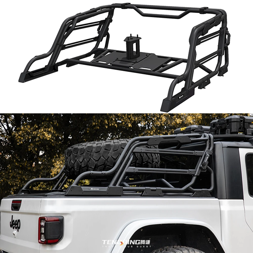 4X4 Pickup Chase Rack Roll Bar Carbon Adjustable Steel with spare tire holder Roll Bar For Jeep Gladiator JT2021+ SXMA JT1026