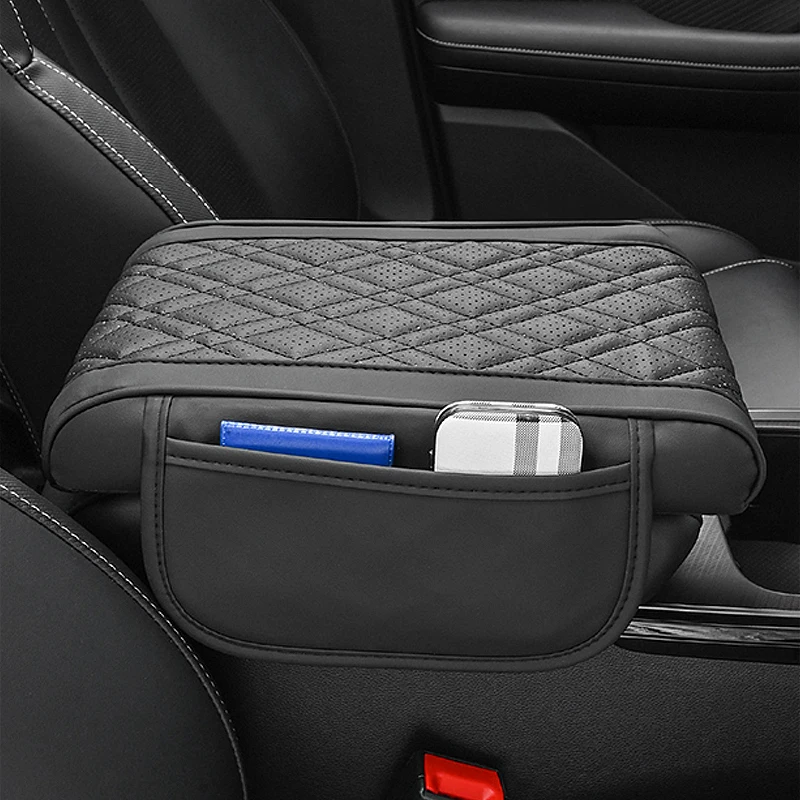 Universal with Side Storage Bag Center Armrest Protective Cushion Support Car Armrest Box Pad Elastic Sponge Leather Height Pad