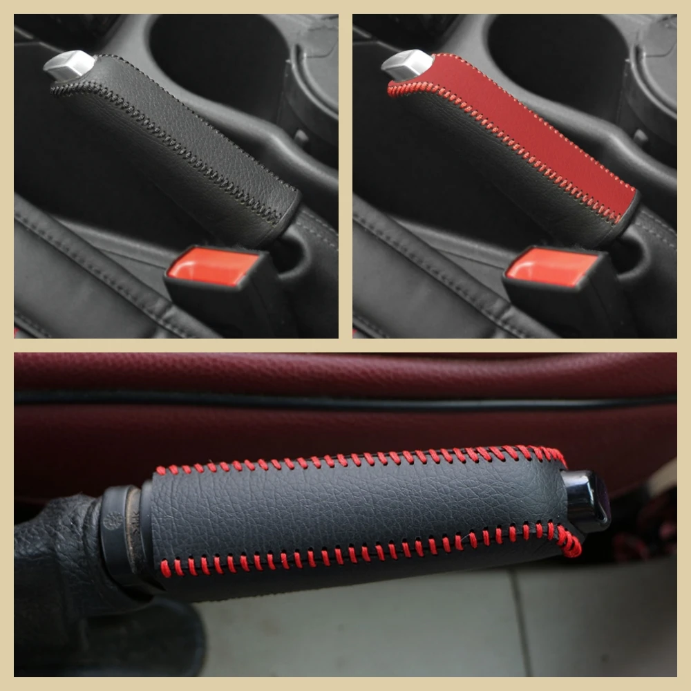 For Mazda 3 2011 Car Handbrake Grips Covers Leather Auto Hand Brake Cover Handle Sleeve Protector Car Interior Accessory