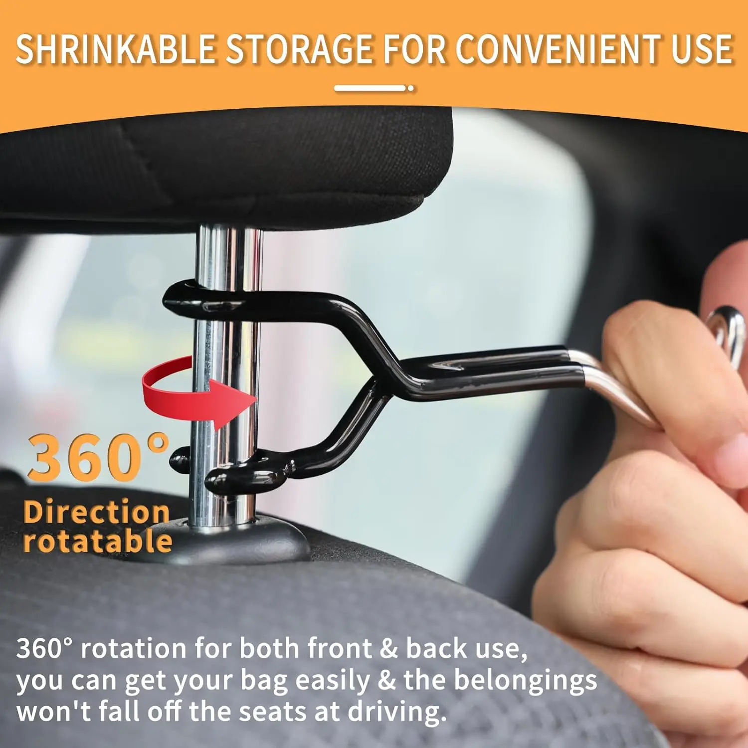 Stainless Steel 360° Rotating Car Headrest Hook Space-Saving Double Reverse Fixation Bags Hanging Hanger Car Interior Storage