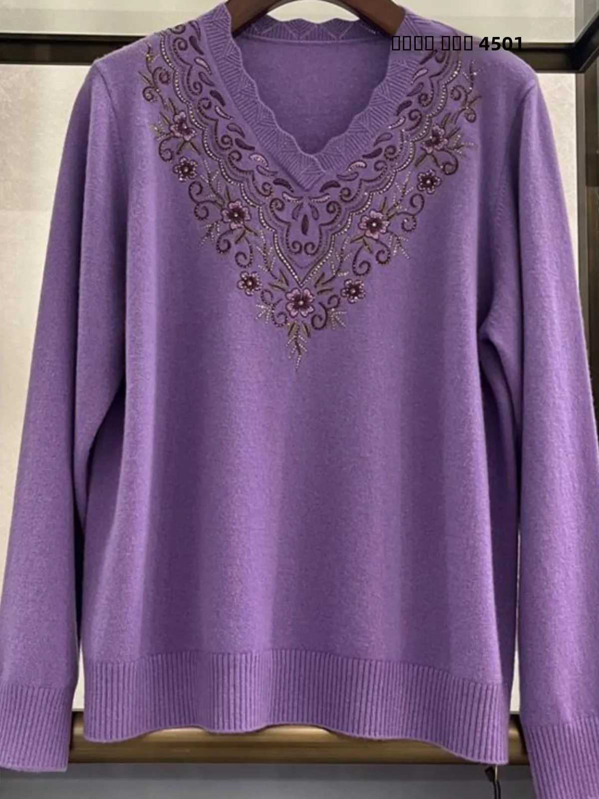 Autumn Winter Mommy Clothes V-ne Button Embroidered Extra Large plus Size Pure Wool Sweater 00% Woolen irt for Women
