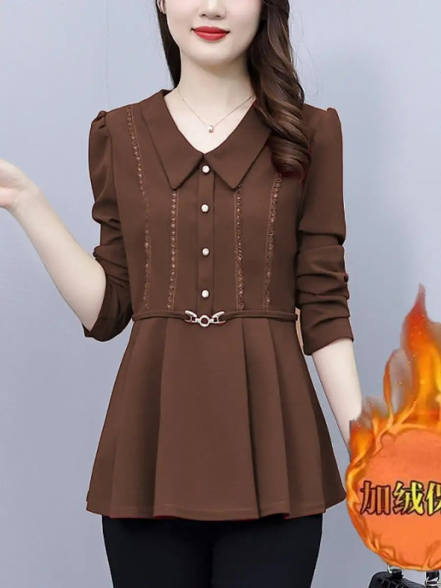 Warm Woolen Base irt Loose Fit Women's Faion Autumn Winter New Sle Pure Color Mommy Clothes Drapey Top Belly Cover