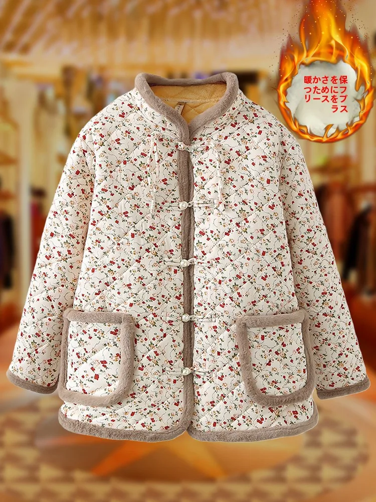 Floral Embroidered Fce Lined Cotton Jaet for Middle Aged And ly Women Button up Warm Sli plus Size Mommy Clothes