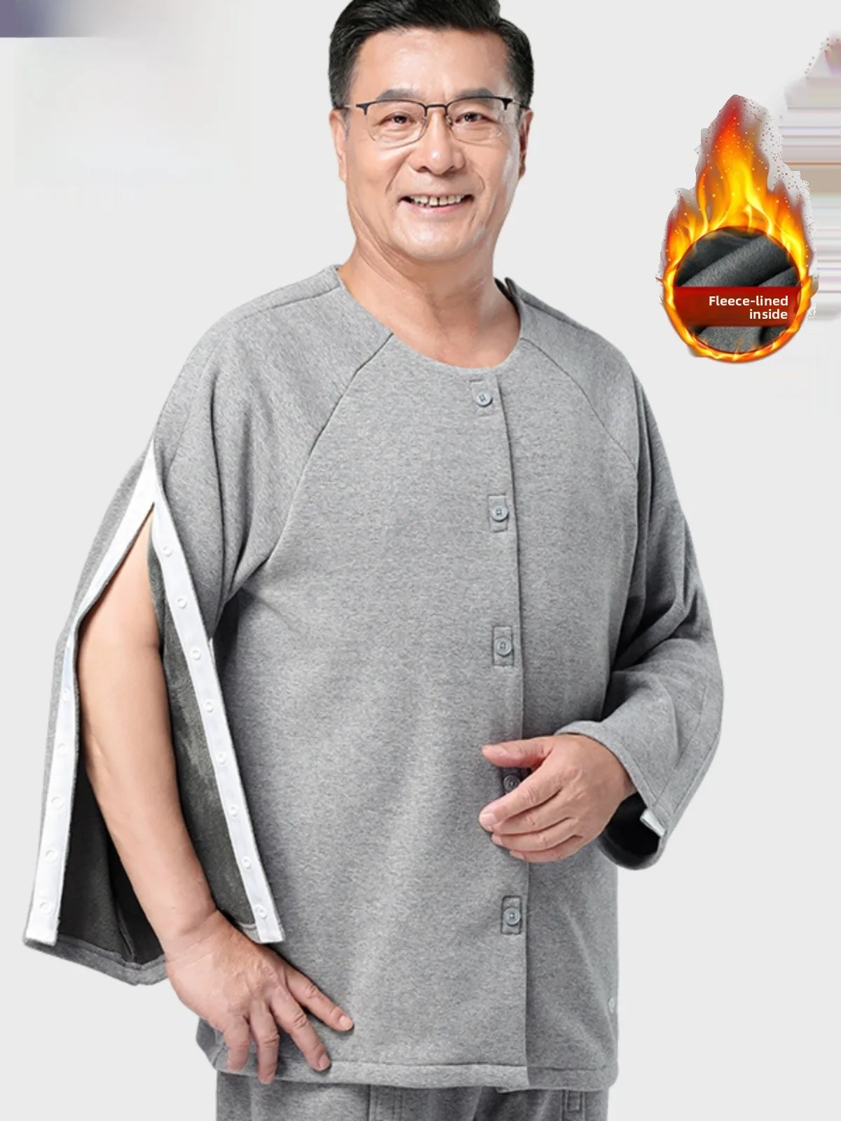 Thickened Fleece Warmth Post-Surgery Caregiving Gown Autumn Winter Easy to Wear off Shoulder Home Clothes for Elderly with Pa...