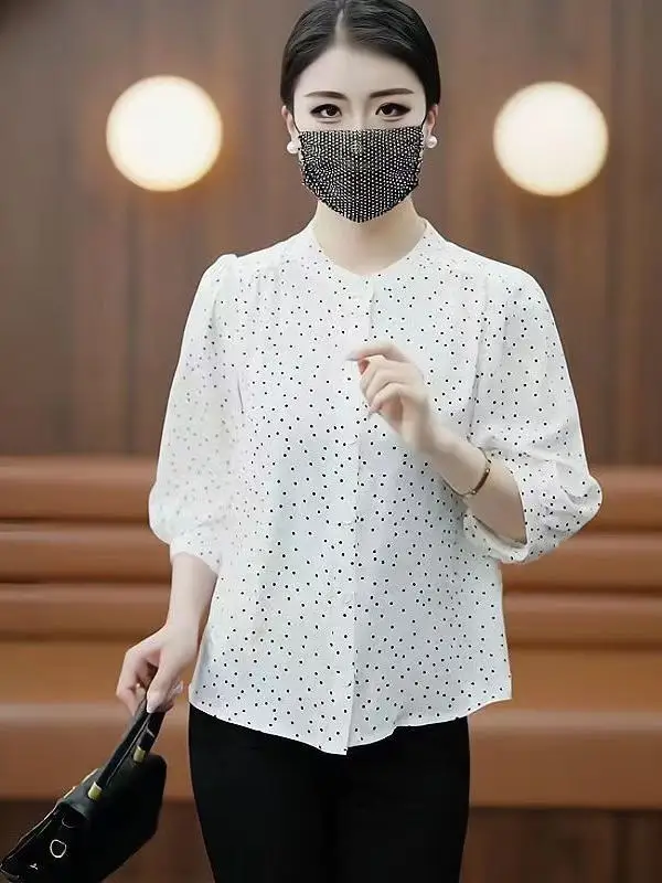 Chic Summer New Sle Women's Chiffon irt Cover Belly f Sve Faionable Loose Fit Midlife Mommy's Wear Top