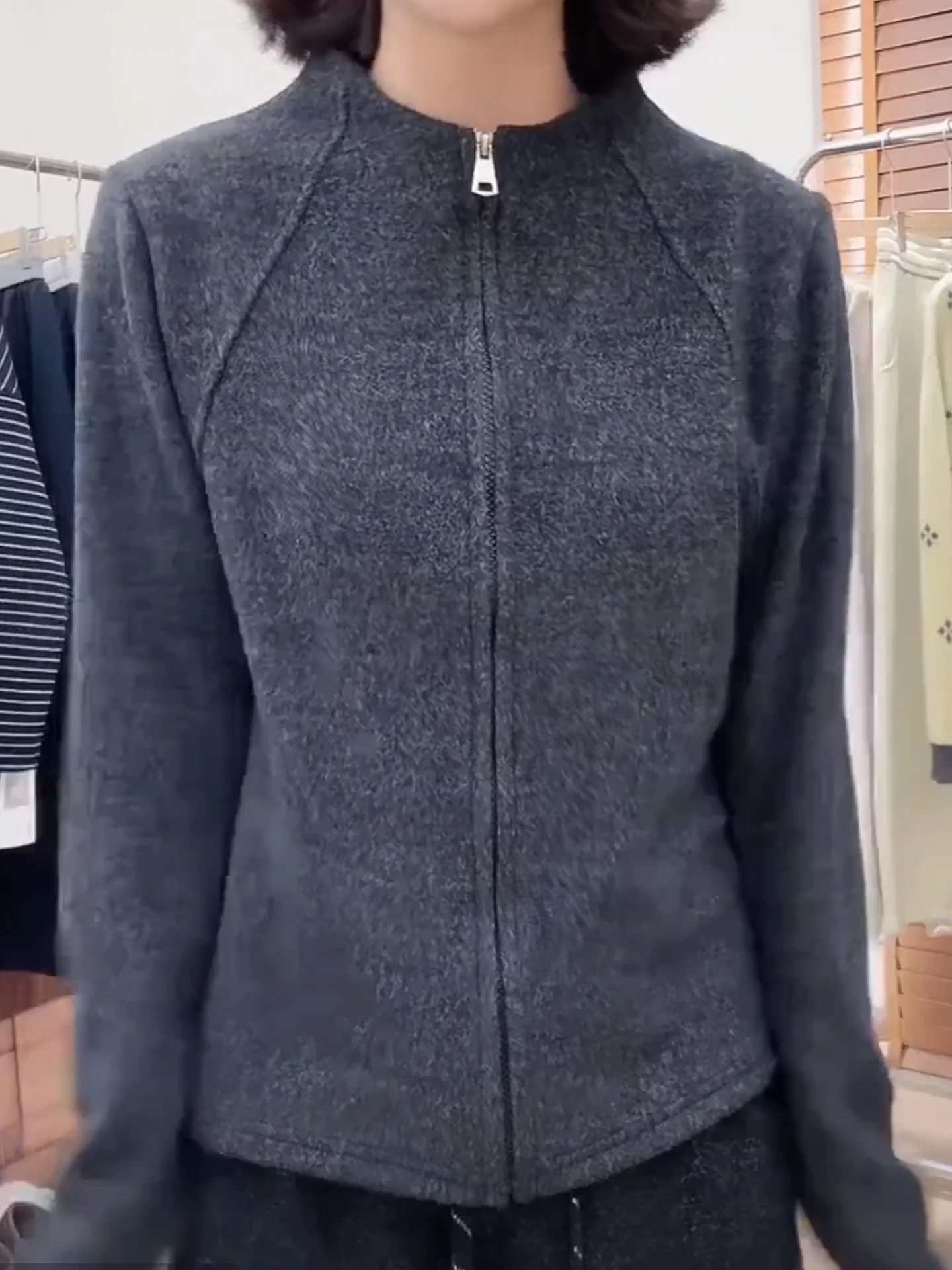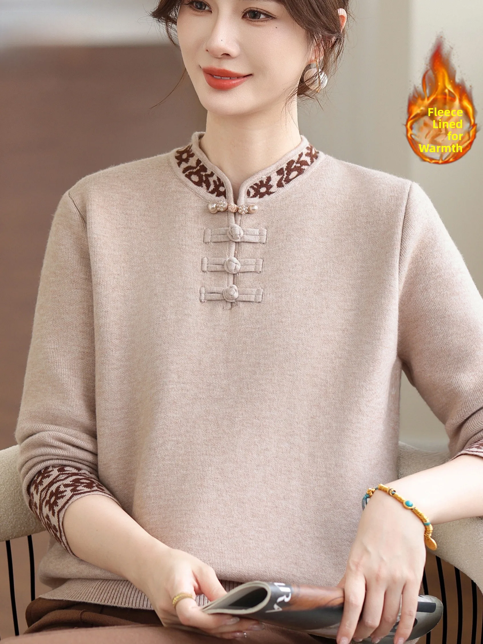 Warm Fce Lined f High Collar Mommy Sle Base irt Top for Middle-Aged And ly Women Faionable Anti-Static Wear