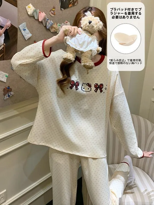 2025 Autumn Winter Polka Dot Spwear Women's Cute Cotton Long Sve Home Clothes Outwear Suitable for Pregnant Women