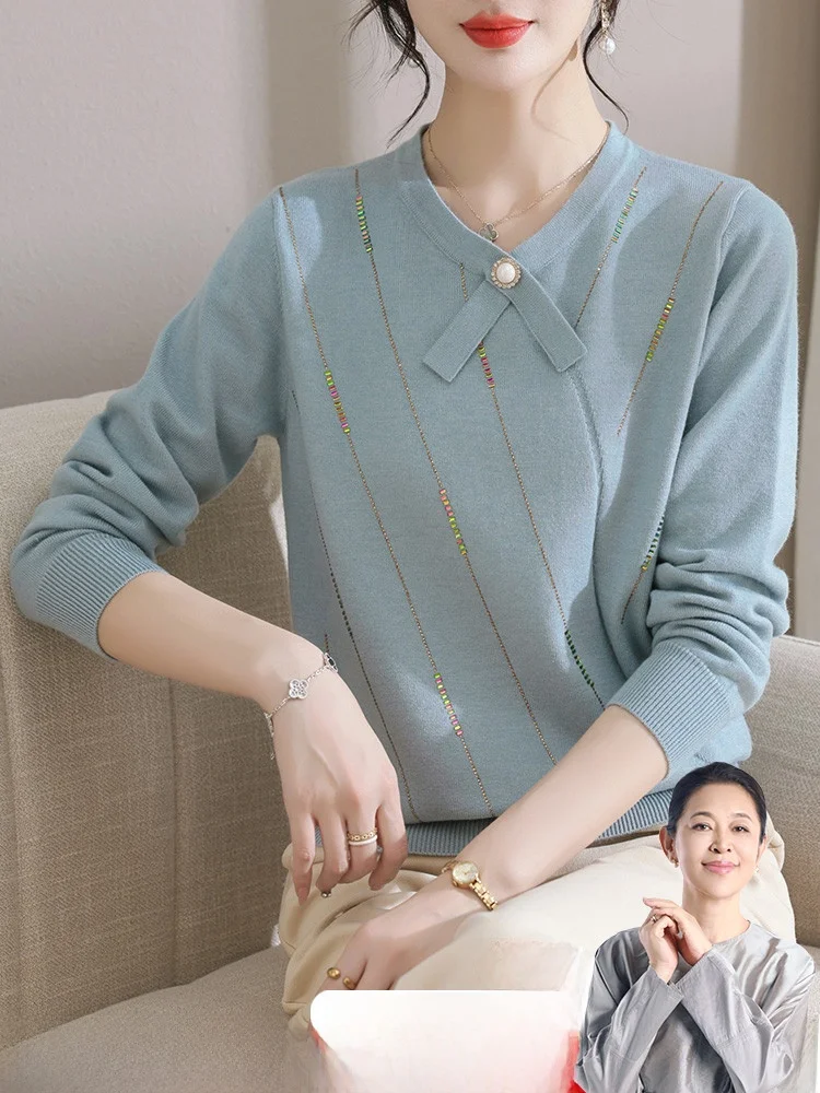 Faionable Knitted Outerwear Set for Middle-Aged Women Autumn New Arrival Mommy Clothes Sli Sweater Top Retro Pattern