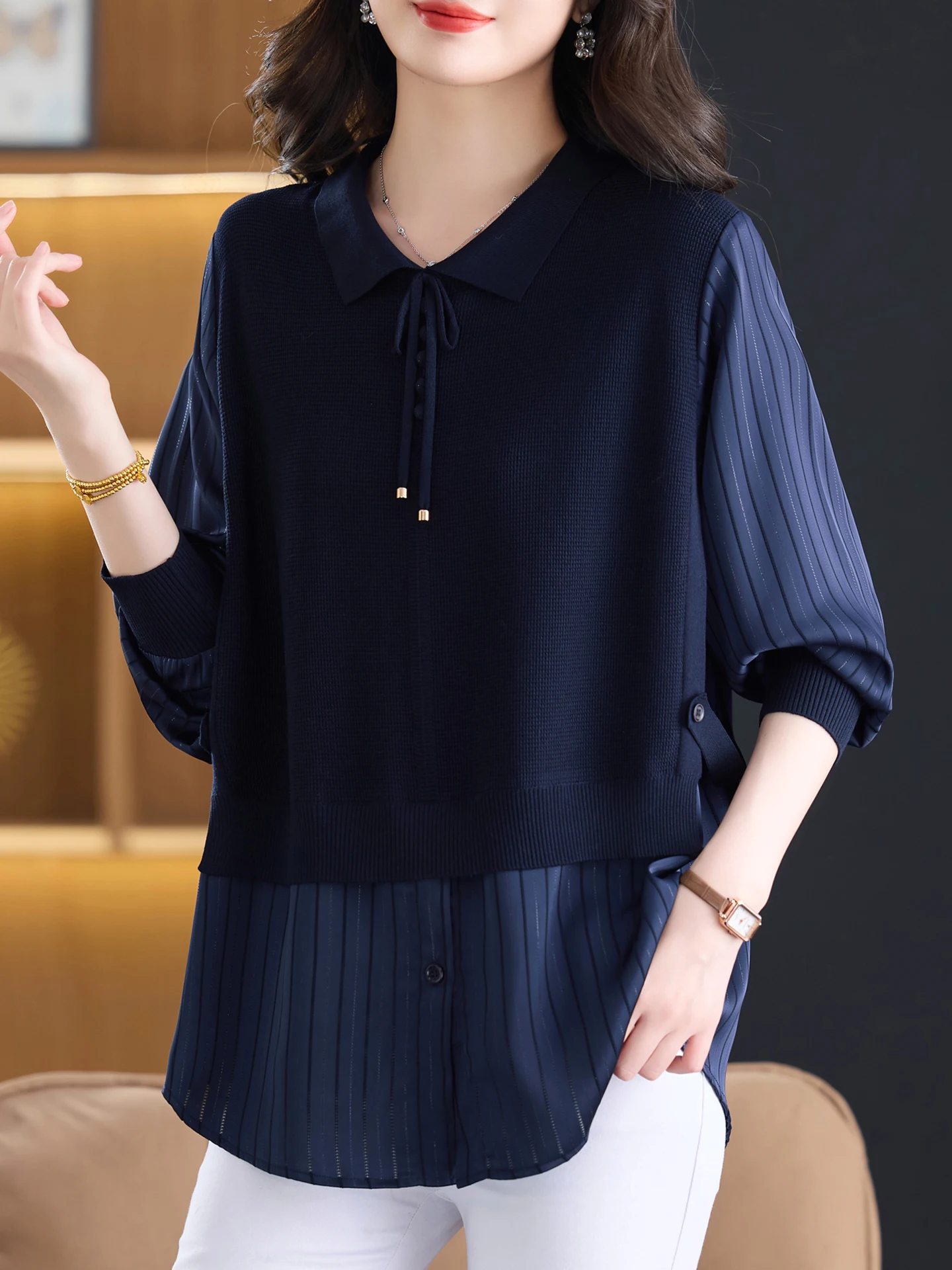 Spring Summer New Sle Mommy Clothes Loose Knitted irt with Plaid Design And Stand Collar for Middle-Aged And ly Women
