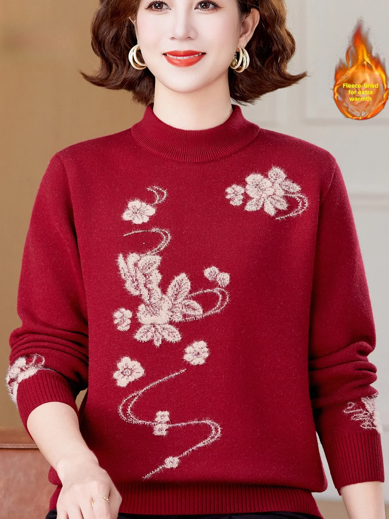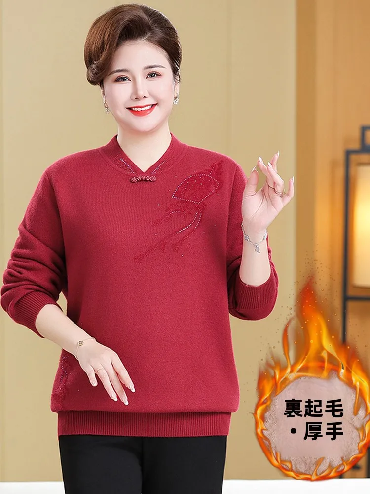 plus Size Winter Thermal irt Women's Fce Lined Thi Elastic Large Code Mommy's Clothes Warm Fluffy Sweater for ly