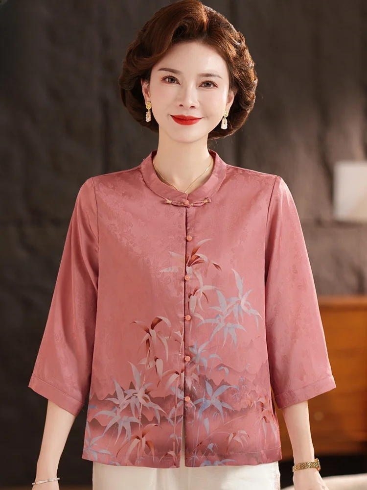 Spring Summer New Sle Mommy Silk irt Trendy Middle-Aged And ly Women's Clothing andma Sle Top for ly Ladies