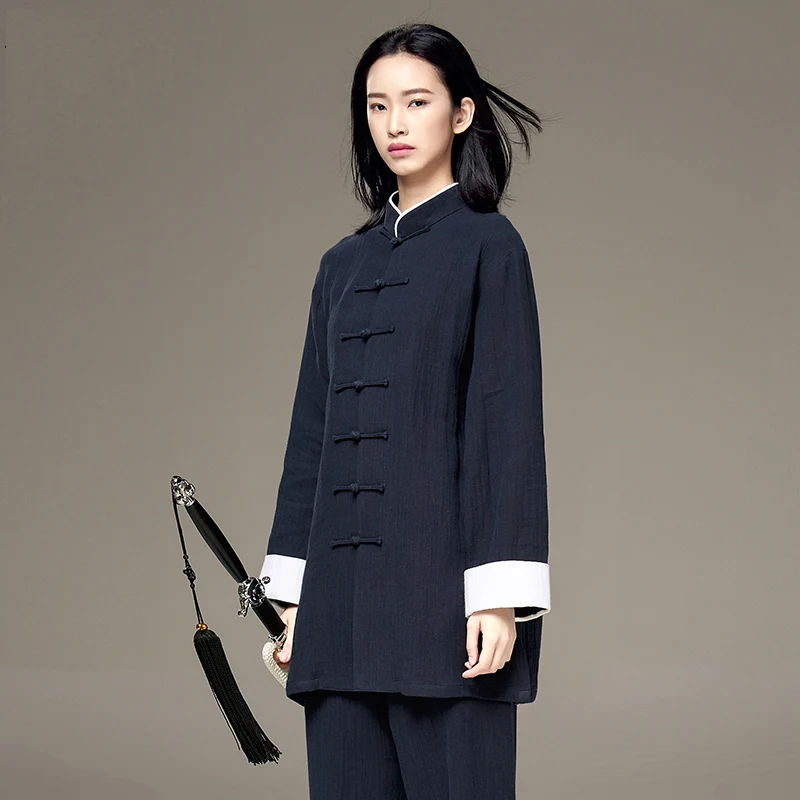 Cotton Traditional Chinese Tang Suit Top Clothes Men Long Sleeve Kung Fu Tai Chi Uniform Spring Autumn Shirt Blouse Coat
