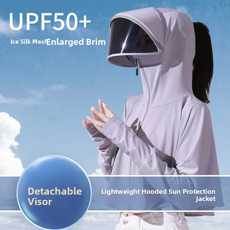 Detachable large brim outdoor couples sunscreen clothing men's and women's knitted mesh skin clothing UV protection