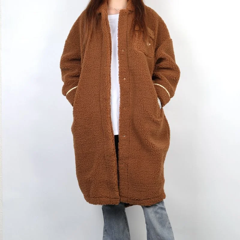 Trefoil Women's Spor Lamb Fur Lined Mid-Length Warm Jaet Coat 030 Casual Sportswear Stand Collar Hidden Button