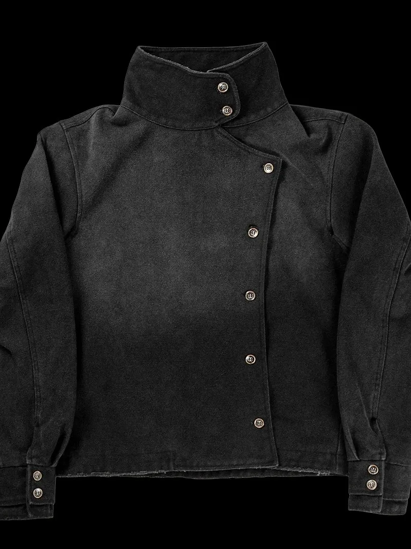 Retro Irregular Button Canvas Cotton Casual Jaet Men's Women's Warm Wear Resistant Loose Fit Sportswear Everyday Wear