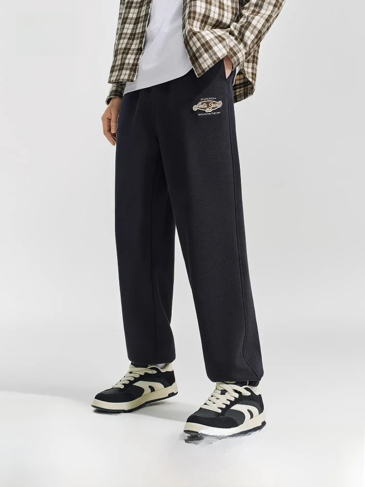 Men's Knitted Fce Lined Sports Sweatpants Winter New Straight Leg Casual Long Pants Cuffed Trousers 5230N