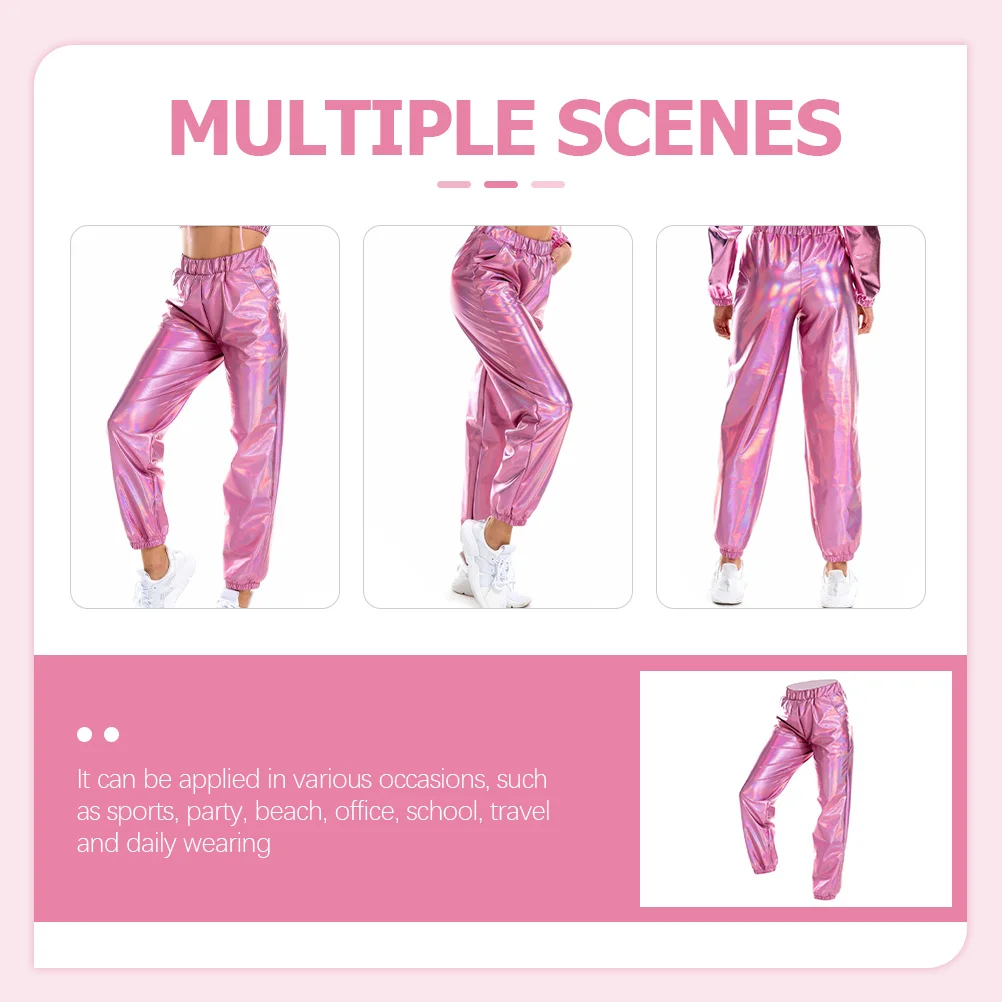 Metallic Workout Pants Women's High Waisted Breathable Yoga Leggings for Running Gym Dance Club 80S Themed Outfit Casual Wear