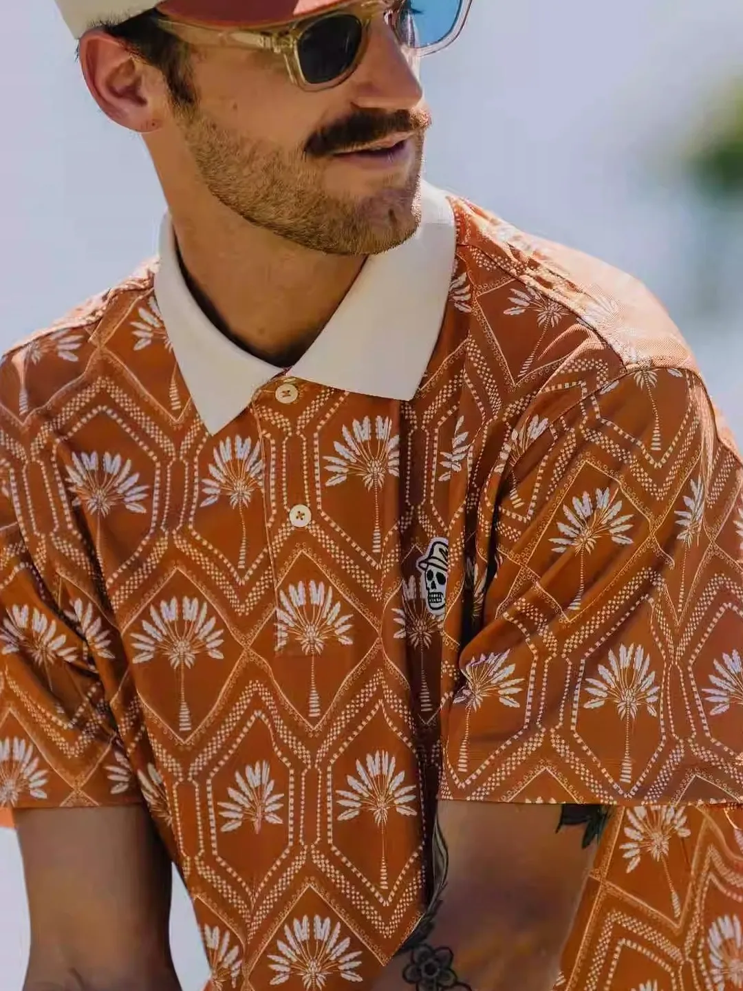 2025 New Men's American High Neck Short Sleeve Golf T-Shirt Color Block Collar Professional Sports Fitness Fans Goods