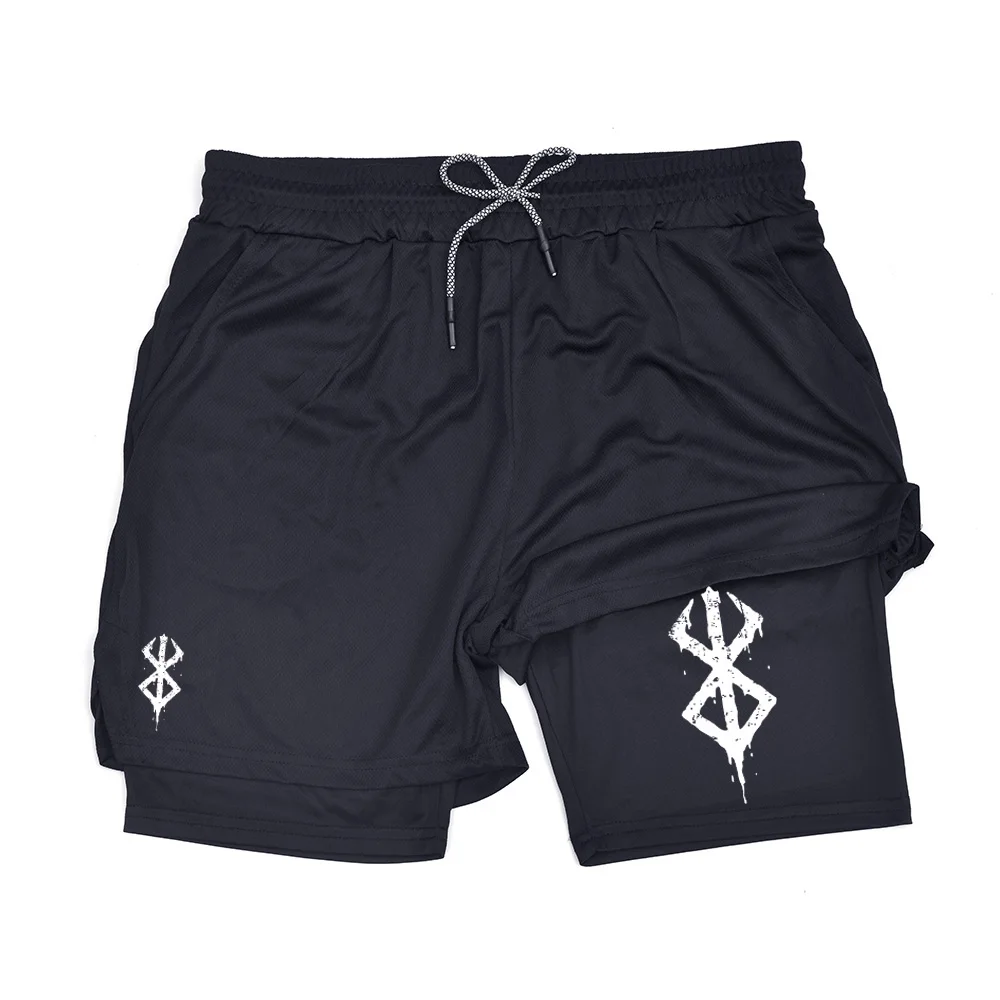 New double-layer men's running shorts, sporty fashionable, breathable quick drying, 2-in-1 anti slip, men's double-layer shorts
