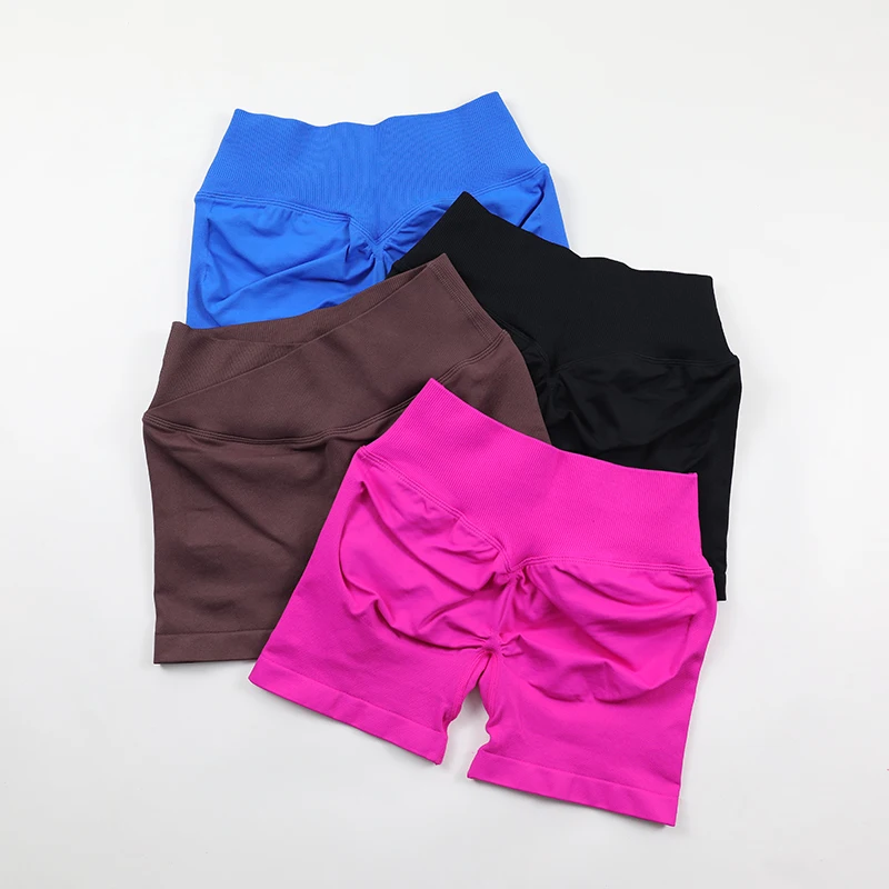 Crossover V Waist Yoga Shorts Women Seamless Scrunch Bum Workout Gym Shorts Low-mid Rise Booty Bike Running Shorts