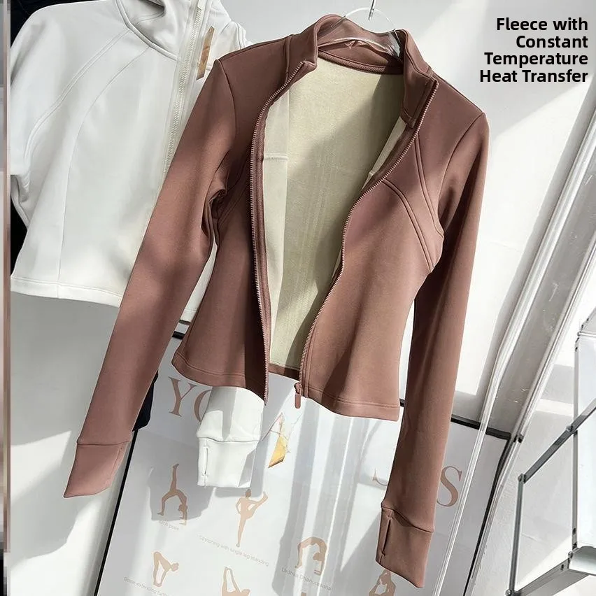 Warm Fce Lined Windproof Yoga Jaet Long Sve Fitn Sportswear Stand Collar Slimming Outerwear for Autumn And Winter