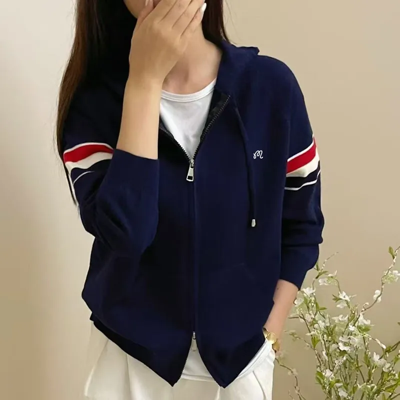Spring Golf Wear Women 2026 New Korean Golf Jacket Fashion Hooded Knit Cardigan Versatile Double Zipper Top Women Golf Clothing