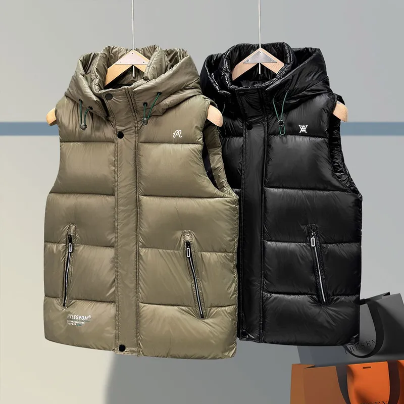 Luxury Brand Golf Vest Men's Golf Wear 2025 Autumn Winter New Padded Vest Fashion Hooded Casual Jacket Men's Golf Clothing