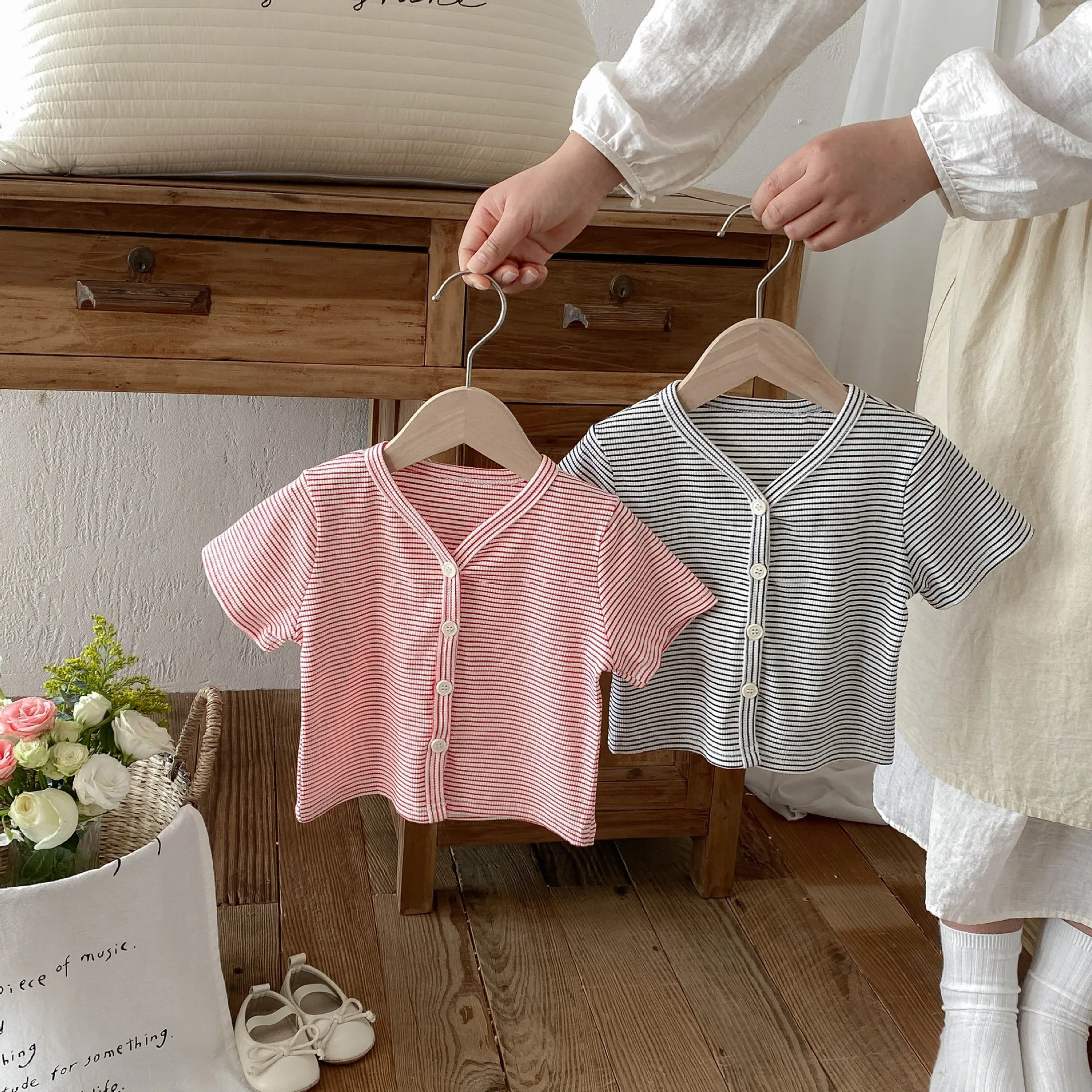 Girls Baby Vest Winter New Fashion Flower Embroidery V-neck A Cow Horn Buckle Children Cute Simple Versatile Waistcoats
