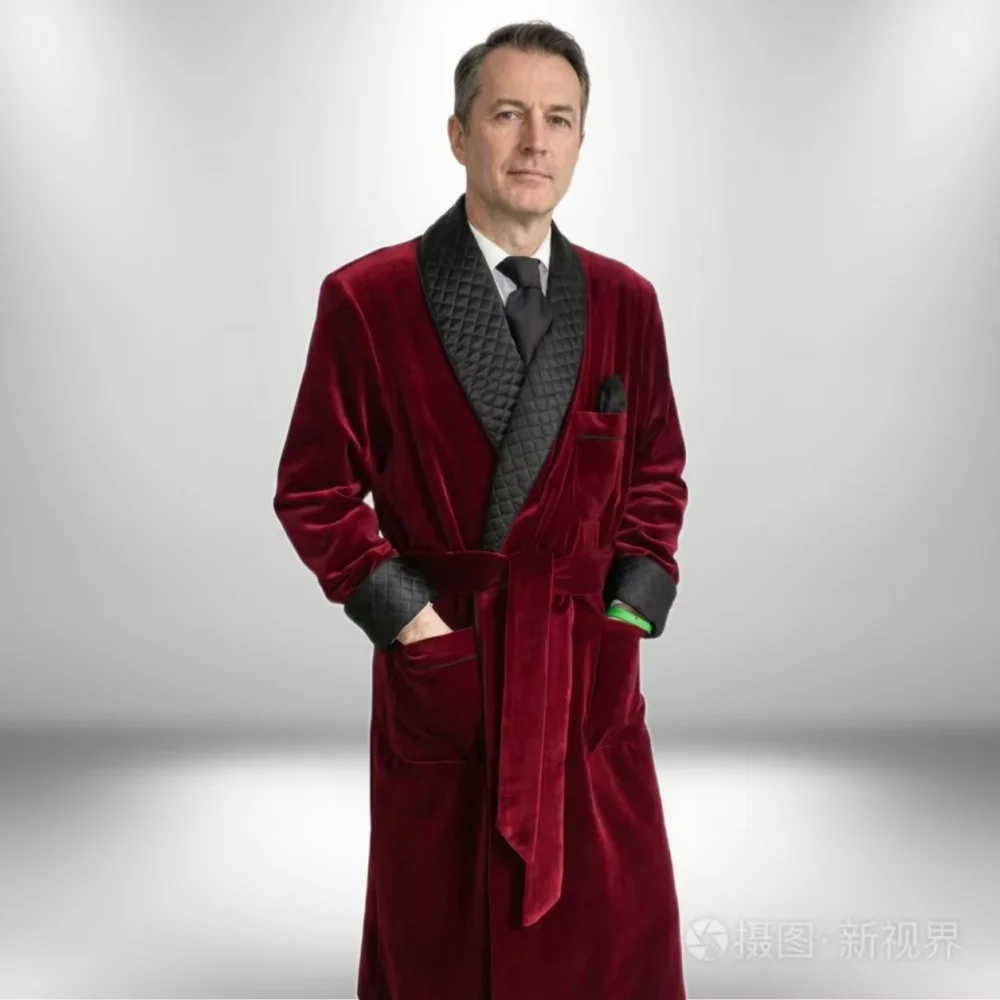 Long Velvet Smoking Jacket Shawl Lapel Wedding Groom Coat Men Suit Blazer with Belt Just the coat