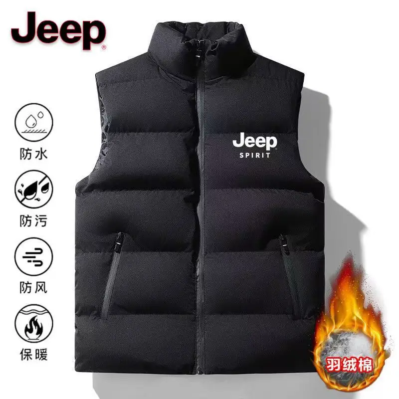 JEEP 2026 New Thick Versatile Stand-Up Collar Winter Down Cotton Men's Vest Sleeveless Outerwear for Men
