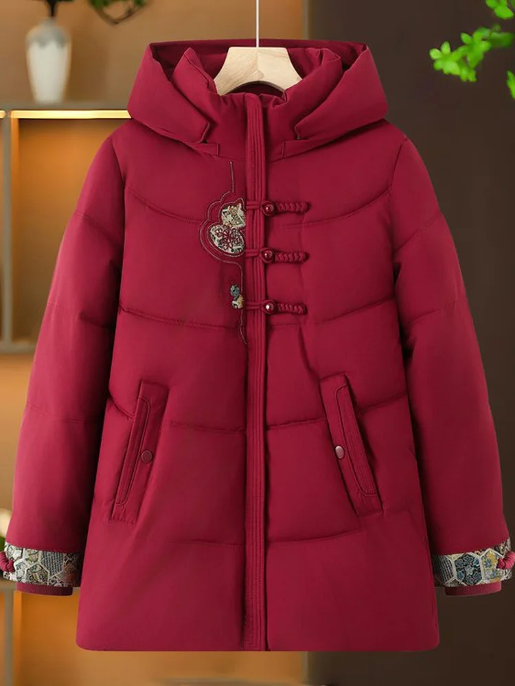 Ele Winter Outfit Fce Lined Thiened Embroidered Cotton Coat Hooded andma Sle Faionable Middle Aged Mommy Clothes