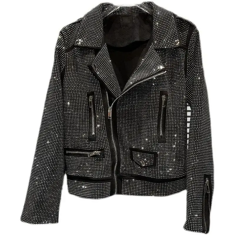 Autumn iny Oblique Zipper Full Diamo Loctive Bomber Jaet Women's ort Outerwear Faionable Ele Sle