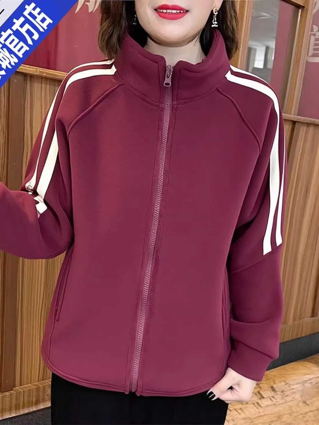 Faionable Autumn Winter Stand Collar Mommy Coat Long Sve Fce Warm Loose Slimming Double Sided Velvet Outerwear