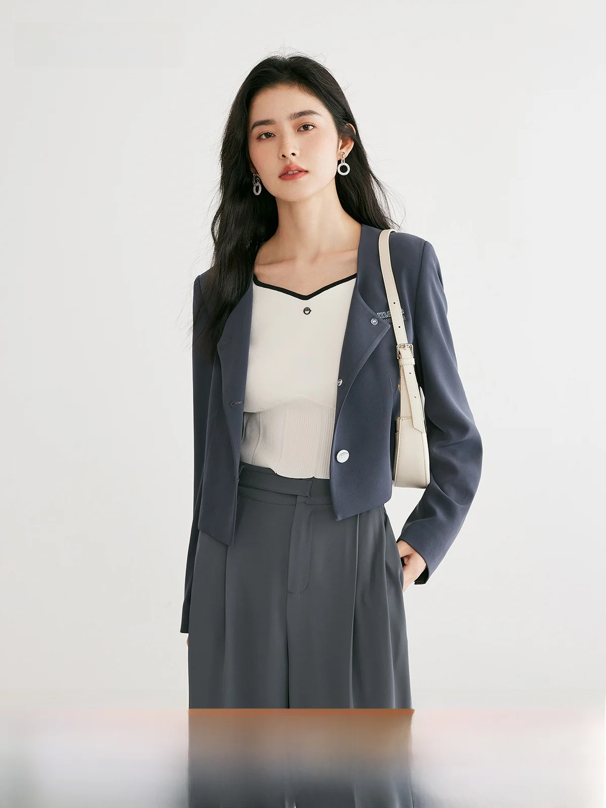 SEIFINI ort Outerwear 3E3033 Straight Cut Long Sve Pure Color Button Closure Polyester Spandex Spring 2023