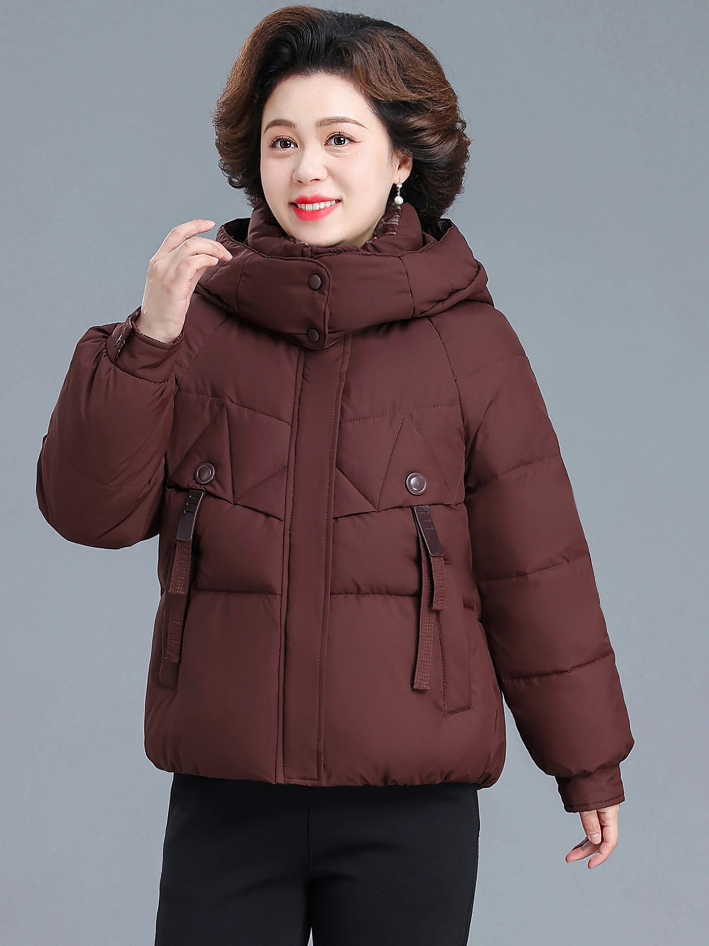 Faionable Mommy Coat Hooded Warm Cotton Jaet Loose Fit Versatile Mid-Aged And ly Winter Outerwear Polyester Fiber