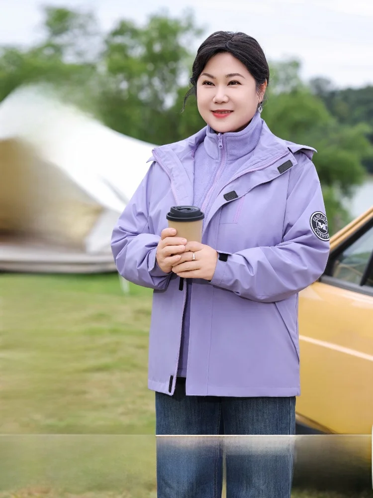 Large Size Casual Outdoor Waterproof Windproof Two-in-One Faionable Mommy Coat Jaet Polyester Fiber Zipper Closure