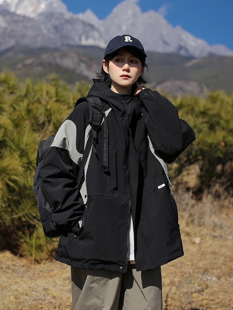 Outdoor Tee-in-One Function Hooded Jaet Men's Women's Color Blo Workwear Top Street Sle Loose Fit Long Sve Zipper