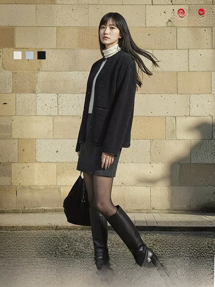 Casual Turn-down Collar Thicker Jackets Fashion Keep Warm Korean Style Coat Vintage Cashmere Jacket Little Fragrance Style