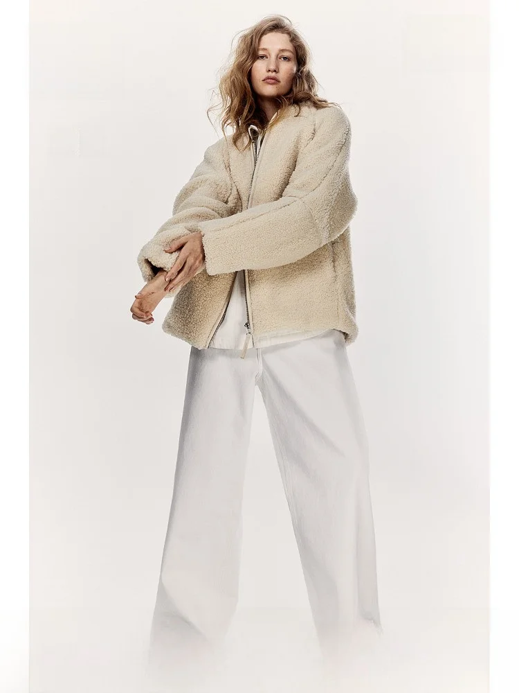 H&M Women's Teddy Fce ort Jaet Loose Fit V-Ne oulder Sve Insert Cardigan Spring Outerwear Comfortable Polyester